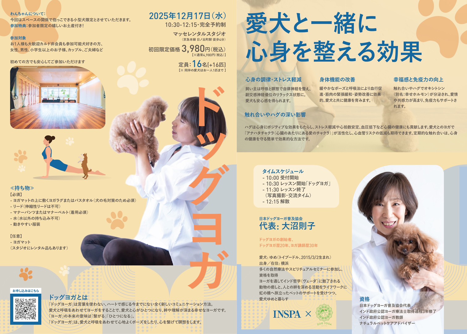 『INSPA✕ドッグヨガ』12/17(水)年末スペシャルイベントのご案内🐾